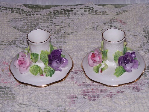 Crown Staffordshire England Fine Bone China Vintage Candle Holders